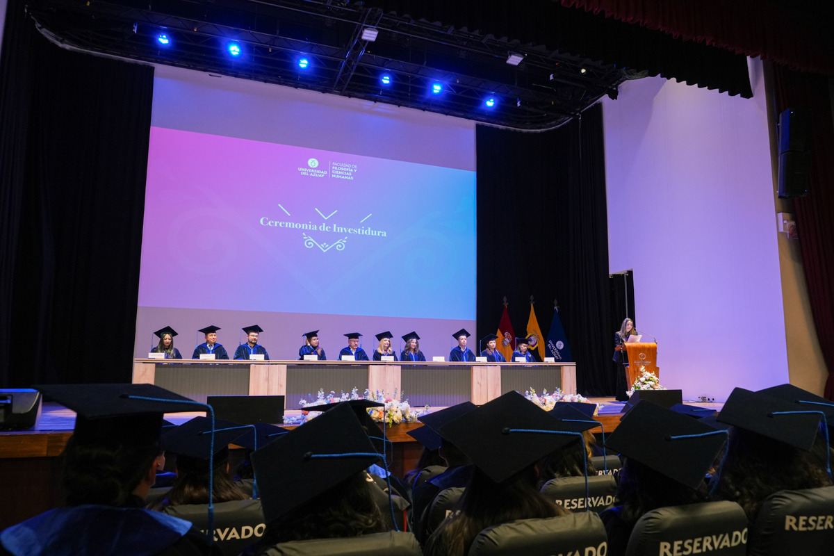 El 29 de enero de 2026 en el Auditorio General de la Universidad del Azuay, se llevó a cabo la Ceremonia de Investidura de la Facultad Filosofía y Ciencias Humanas: Educación Básica, Educación Inicial, Educación Especial y Preescolar, Comunicación, Turismo y Tecnología Superior en Turismo Rural.