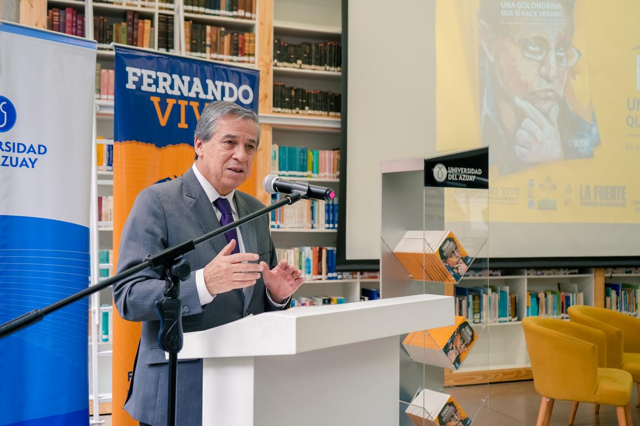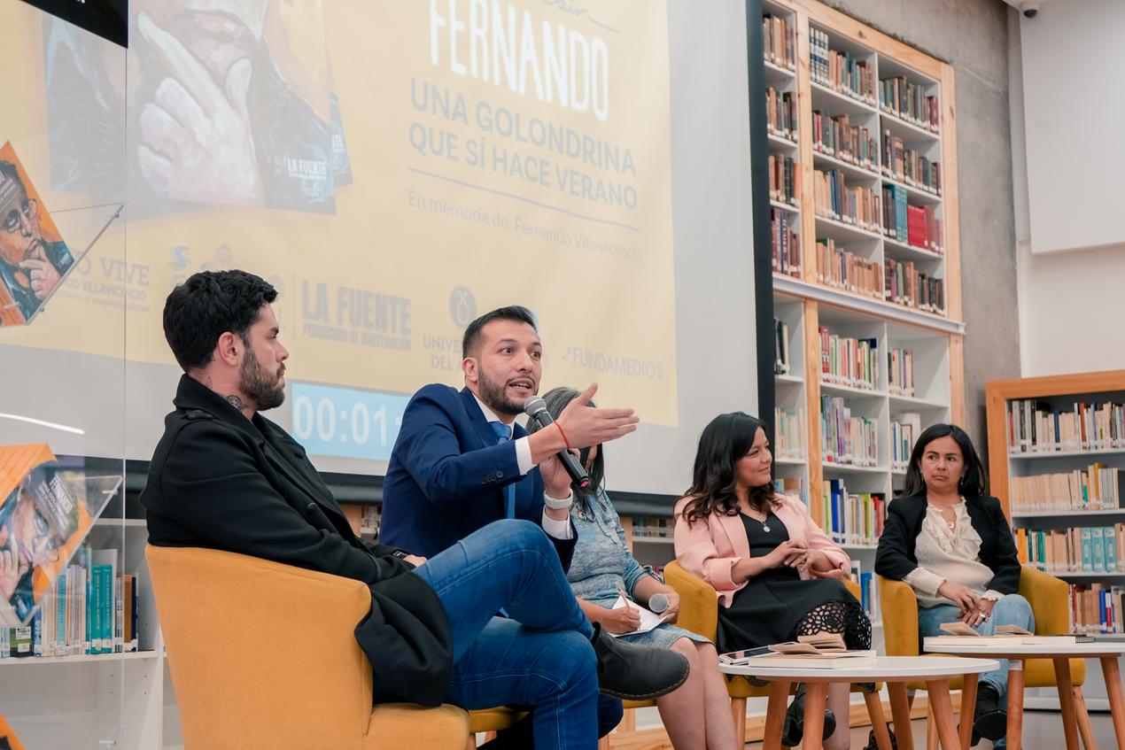 El 10 de octubre en la Universidad del Azuay se llevó a cabo el lanzamiento del libro “Un año sin Fernando, una golondrina que sí hace verano” en memoria de Fernando Villavicencio Valencia por las autoras Amanda y Tamia Villavicencio.
