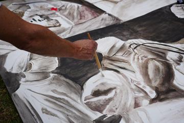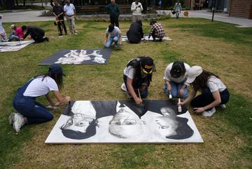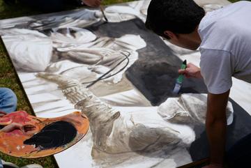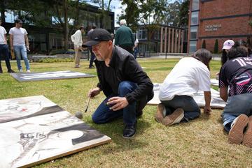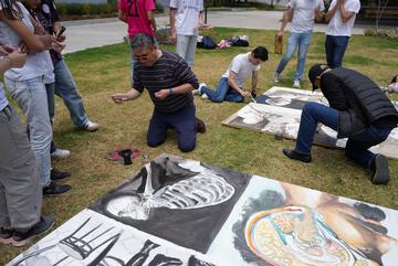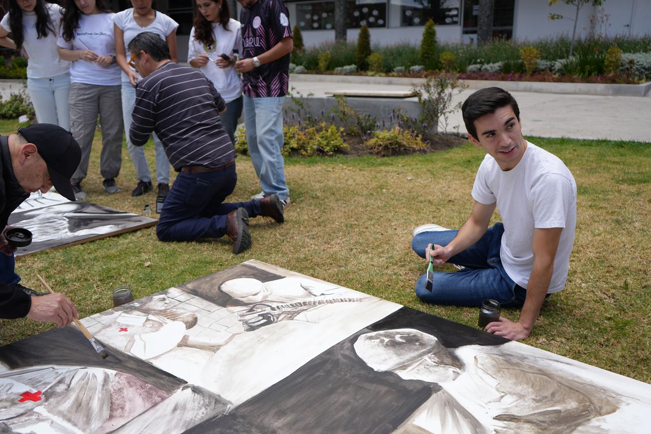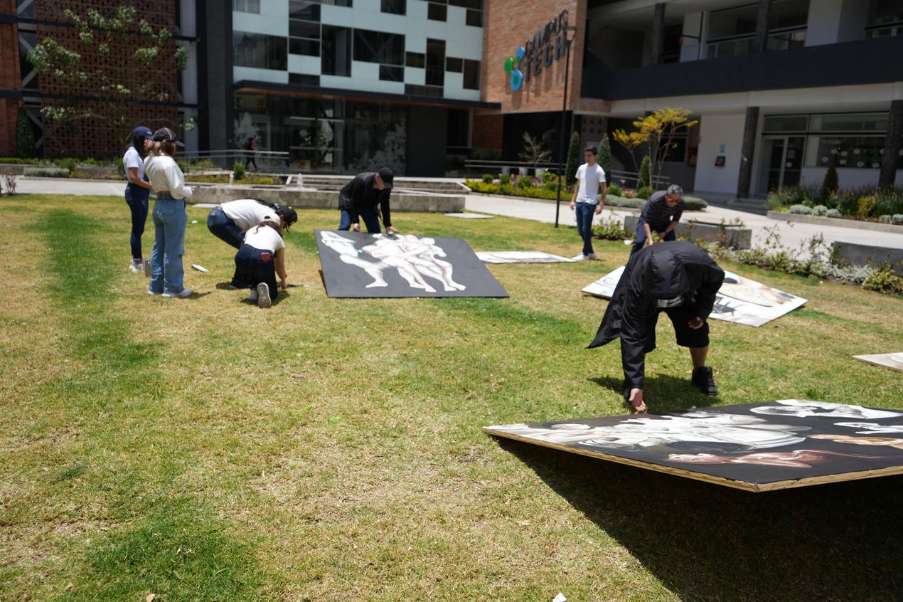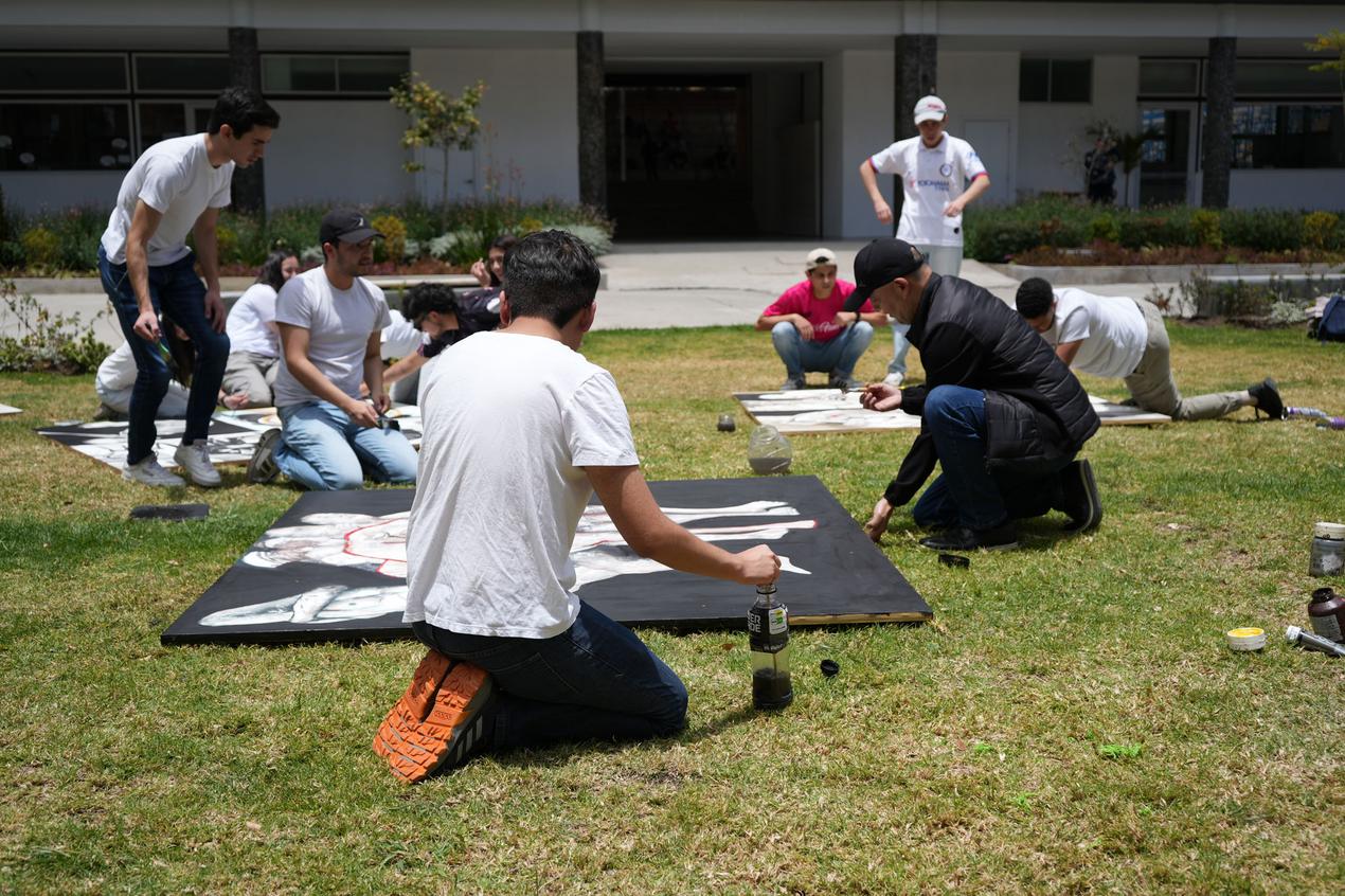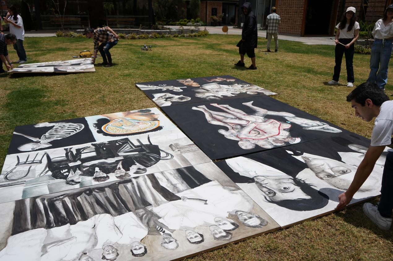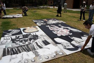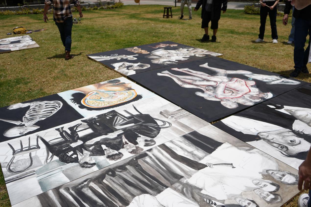 El 14 de septiembre os estudiantes de la Escuela de Medicina realizaron un performance artístico sobre la obra "Memoria del Cuerpo" obra del docente James Pilco.