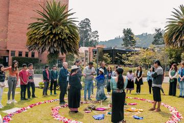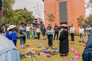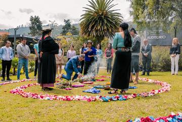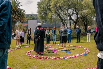El 5 de octubre, María Mercedes Quizhpe, madre de una estudiante de Antropología en la Universidad del Azuay, llevó a cabo una emotiva ceremonia y ritual de inicio de la carrera en el campus. La ceremonia, llena de espiritualidad y símbolos de la cosmovisión ancestral, buscaba otorgar una buena siembra a la primera generación de estudiantes de esta escuela.