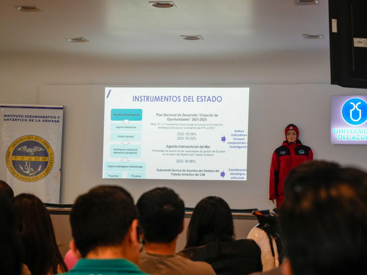 Miembros del Instituto Oceanográfico y Antártico de la Armada (INOCAR) visitaron la Universidad del Azuay. Este encuentro, organizado por el Vicerrectorado de Investigaciones, busca potenciar el intercambio de conocimientos y la colaboración en proyectos de alto impacto para nuestro país.