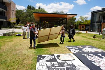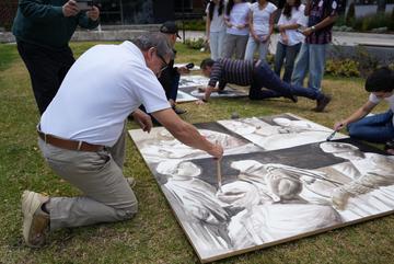 El 14 de septiembre os estudiantes de la Escuela de Medicina realizaron un performance artístico sobre la obra "Memoria del Cuerpo" obra del docente James Pilco.
